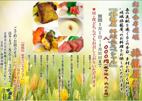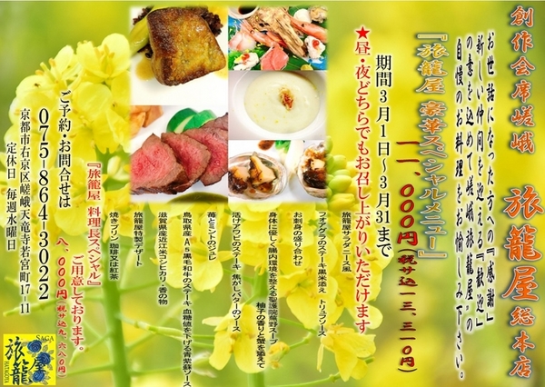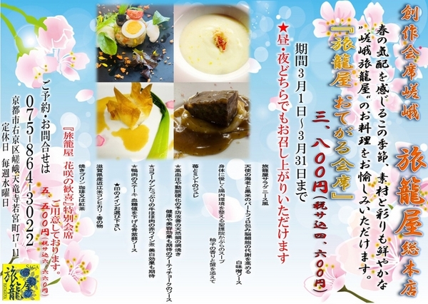 期間:3月1日〜3月31日まで 3,800円(4,600円(税サ込)) ※昼・夜どちらでもお召しあがりいただけます