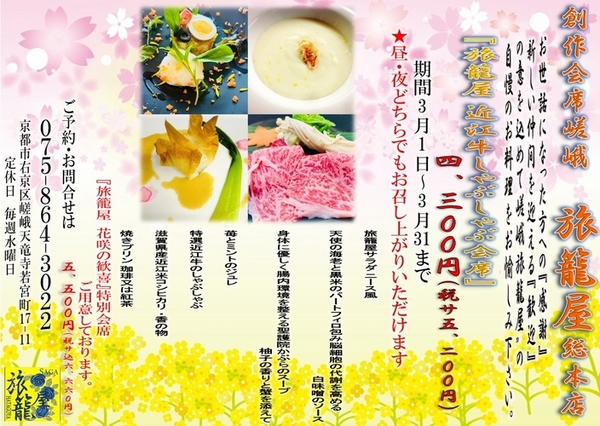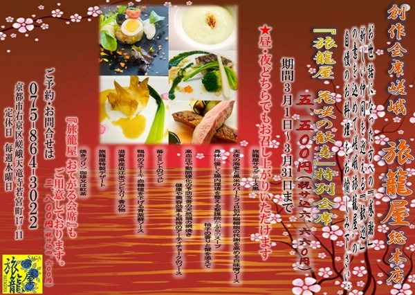 期間:3月1日〜3月31日まで 5,500円(6,660円(税サ込)) ※昼・夜どちらでもお召しあがりいただけます